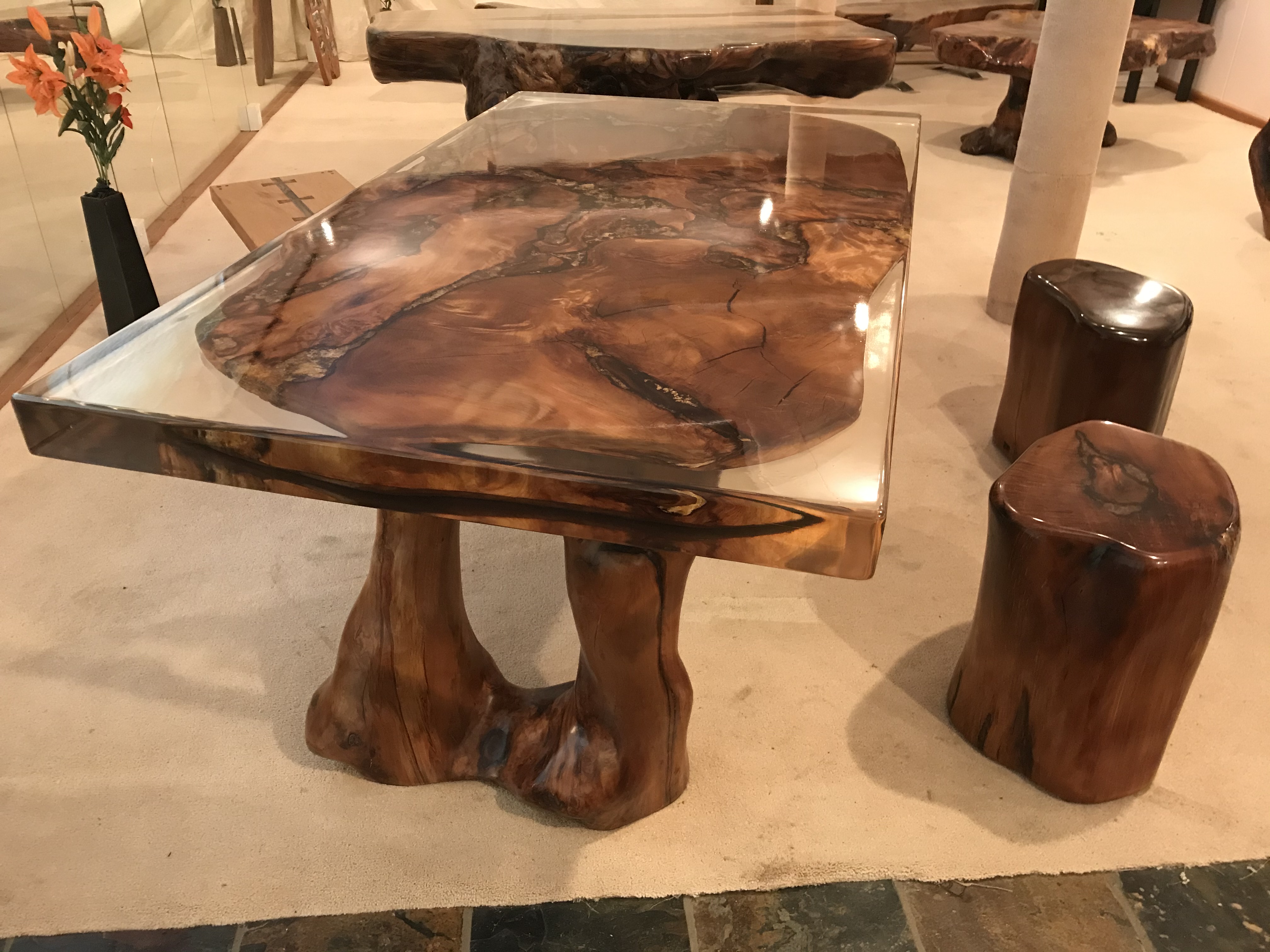 Our coffee tables are smaller than our dining tables and are perfect as additions across your home. Our classic coffee tables have a naturally shaped base and can be cut into any size.
